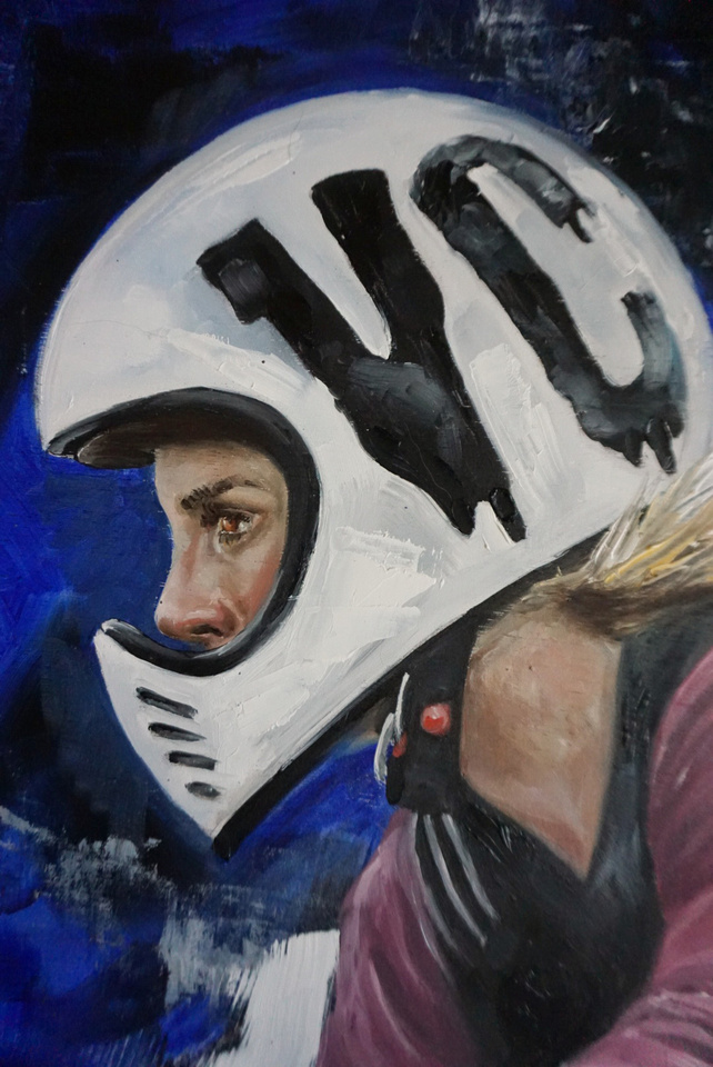 Through her paintings, she aims to explore how motorcycle culture is becoming more diverse, and whether this is beginning to translate into a stronger sense of community and freedom.